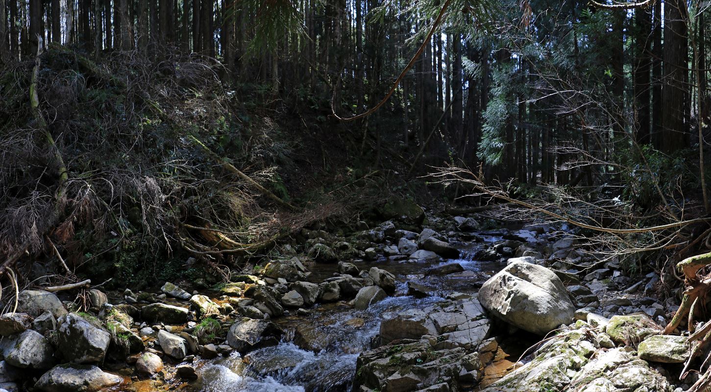この辺りから下部を流れる田代川の川音が聞こえてきました。砥石郷山の山頂から標高差500mと大きな下りでした……急坂なので下りでは勧められないコースと情報収集の段階で見かけましたが、登りは登りで大変そうな気が。