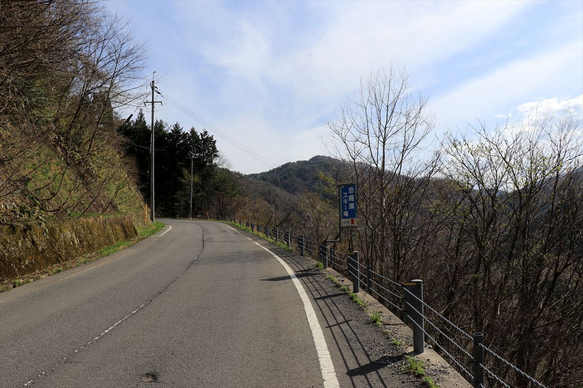 車が通れないのも当然で、林道は途中で落石によって通行不能となっていました。その先でそこそこ立派な舗装路と合流。恐羅漢スノーパークと聖湖を結ぶ道のようで、以降はちらほら車通りがありました。