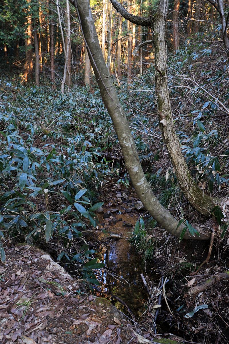 途中で沢を見かけました。水汲みした牛小屋川の沢水よりは澄んでいましたが、入れ替えるのは面倒なのでスルーして先へ。
