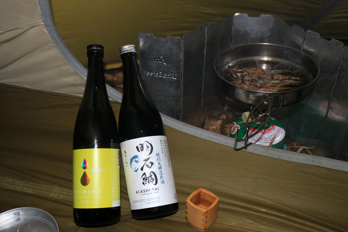 本日の夕食です。普段であれば肉焼きですが、今回は子持ちししゃもを代わりに焼いてみました……これは完全につまみですね。独特の苦味が明石鯛の特別本醸造原酒とよく合います。