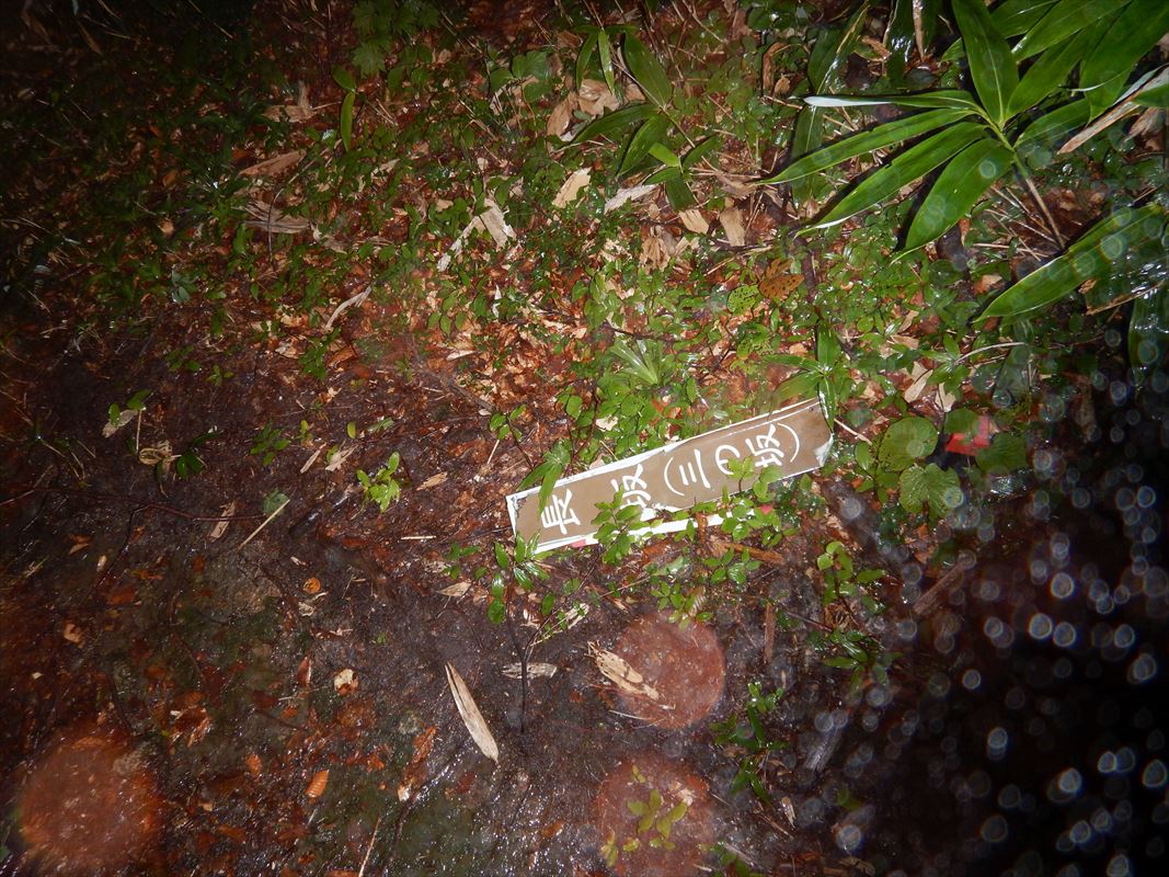 神社の跡地から先の道の様子。やはり殆ど歩かれていないのか、塞ノ神峠の前後の区間と同様に藪が濃いです。雨が止んでからだいぶ経つので濡れずに済むのが幸い。