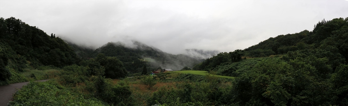 パッキングを済ませ細越峠を出発します。この日は未明から土砂降り……という程ではないですが結構な勢いの雨でした。
