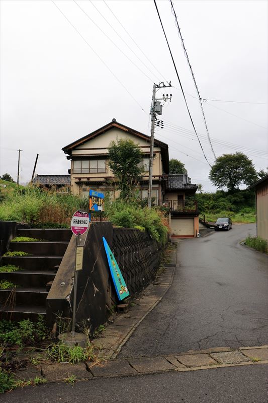 集落内の道はかなり入り組んでいますが、六十里越街道のルートが分岐する場所には目立つ幟が立っているので迷う事は無い。