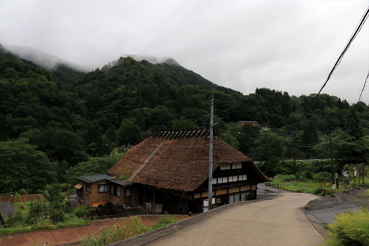 松根の集落の様子。先に巡った田麦俣と同様にかつては六十里越街道の宿場町であり、出羽三山信仰の拠点として栄えていた集落とされています。