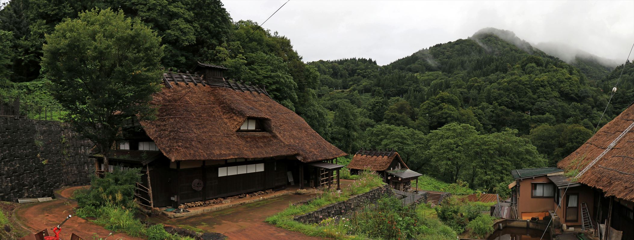集落内の坂を下りきった所にある一際大きな茅葺屋根の古民家は旧遠藤家住宅と呼ばれ、田麦俣という集落におけるシンボル的な施設となっているようです。兜造りの多層民家と呼ばれる特異な形状の古民家ですが、こちらの建物は元々は通常の茅葺の様式であったものの、明治期に養蚕を行うようになって現在のような形に改造されたとの事。