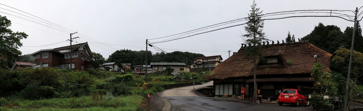 古民家周辺の様子。通りに面した方の棟は民宿として利用されているようで、有料で内部の見学ができるらしいです……しかし9時からの営業という事で諦め。