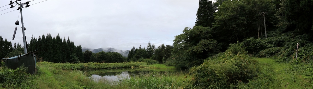 棚田の上部には農業用の溜池があります。普段から人が入るのはここまでのようで、此処から先は先程と同様の藪道となります。