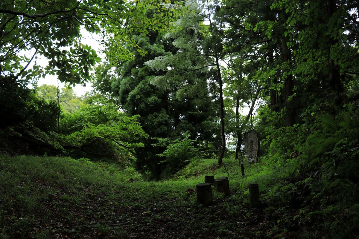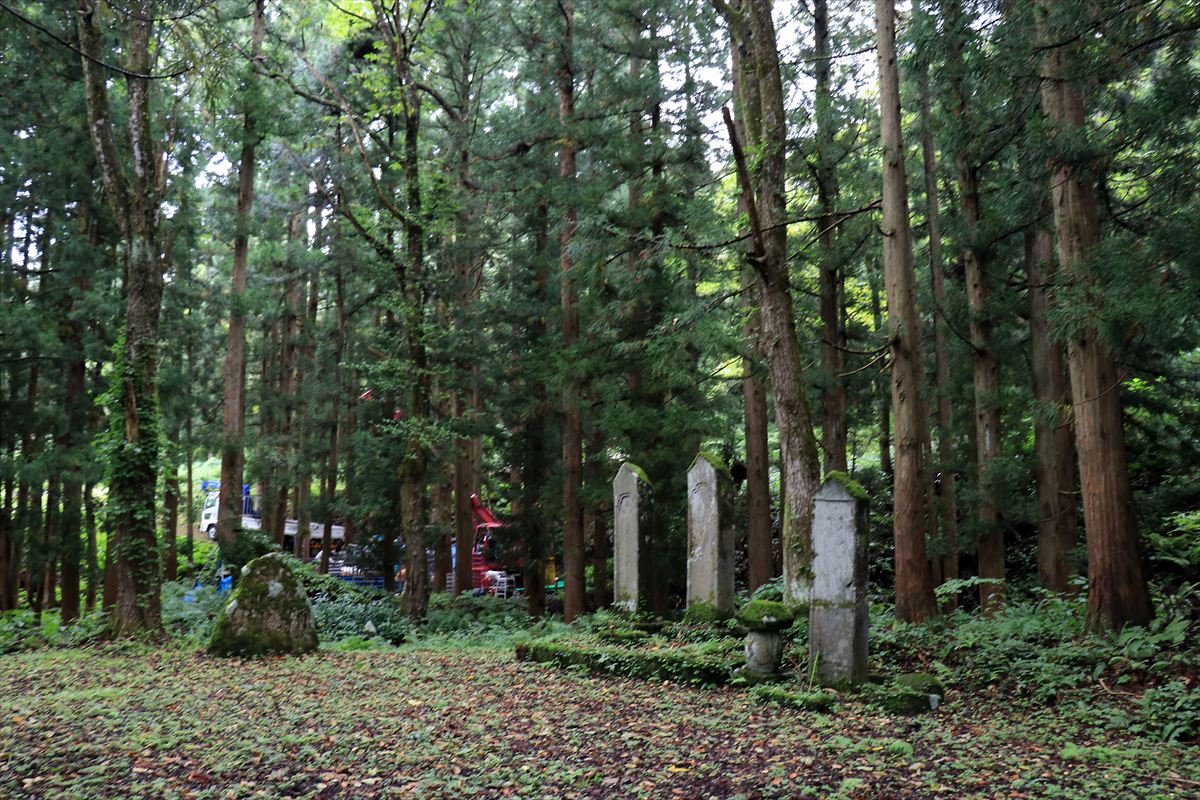 路傍の石碑には花が手向けられていたような形跡が……時期的にお盆頃のものでしょうか。一帯の笹も綺麗に刈り払われていますし、定期的に人が訪れているようです。