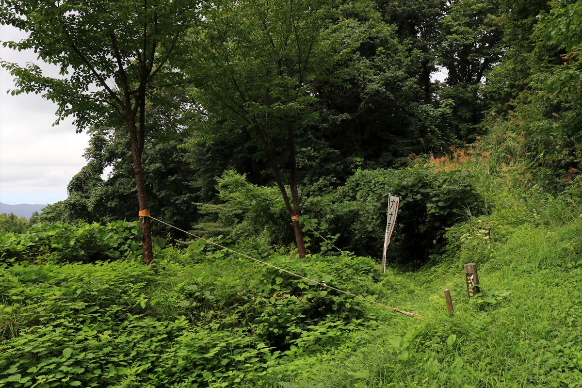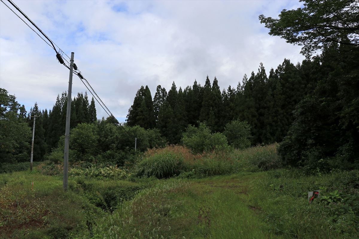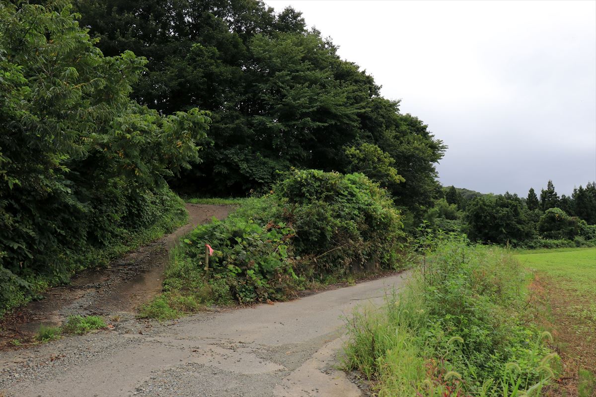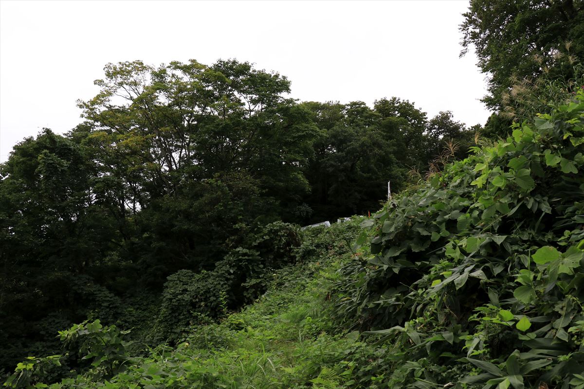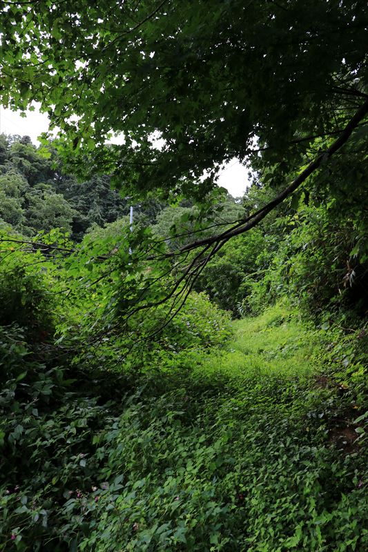 藪道を登りきった所。少し前まで田んぼでも広がっていたかのような開けたスペースがありますが、使われなくなったのか雑草が蔓延っている。
