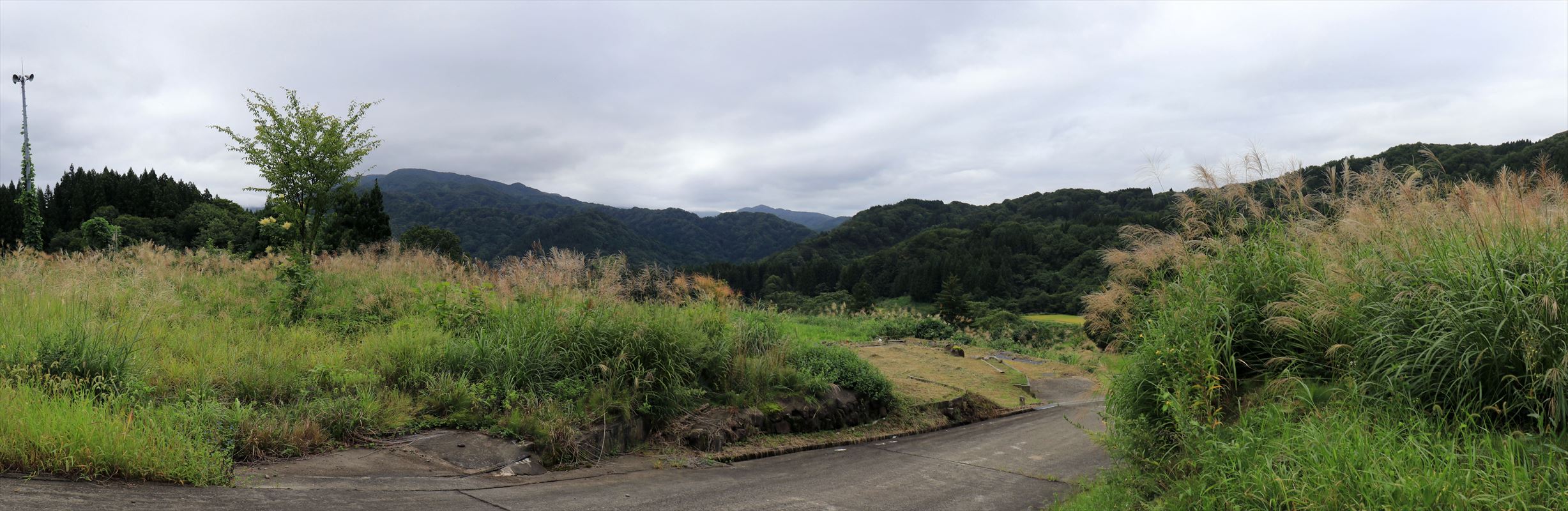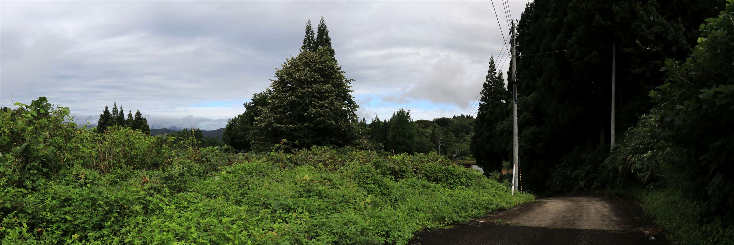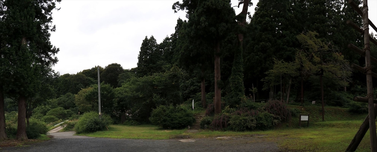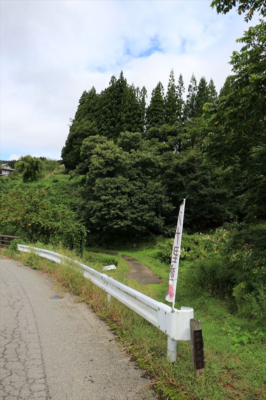 言うまでもなく出羽三山信仰に関連したものでしょうが、どうしてこんな何の変哲もない道端に……と疑問に思いつつ少し進むと旧大日坊境内跡地という標識が視界に入りました。解説板によれば、これから向かう大日坊は元々この山裾に広がっていたものの、昭和初期に地すべりの被害があり、現在地である上村の集落内に移転したという。