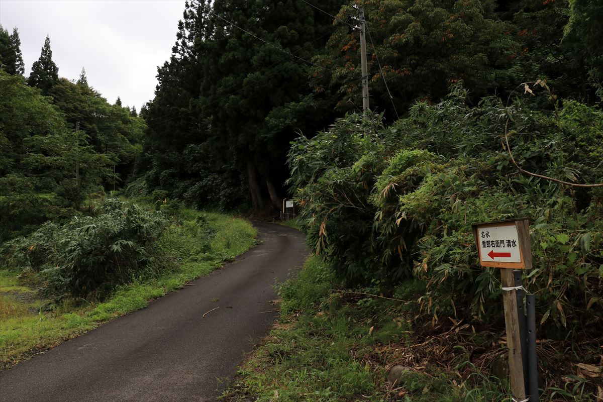 塞ノ神峠から下って1つ目の集落である関谷の集落に入る手前に重郎右衛門清水という湧き水が……しかし柳清水で汲んだばかりなので立ち寄らず。