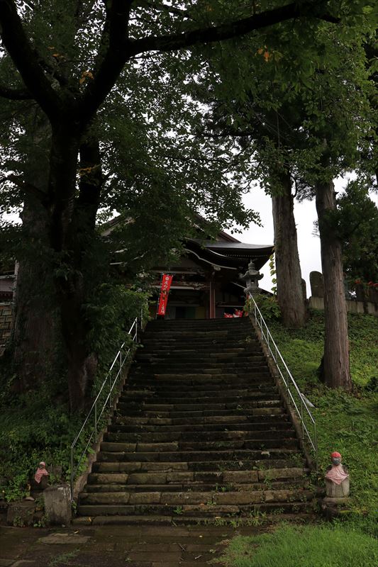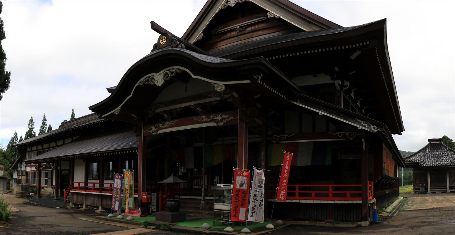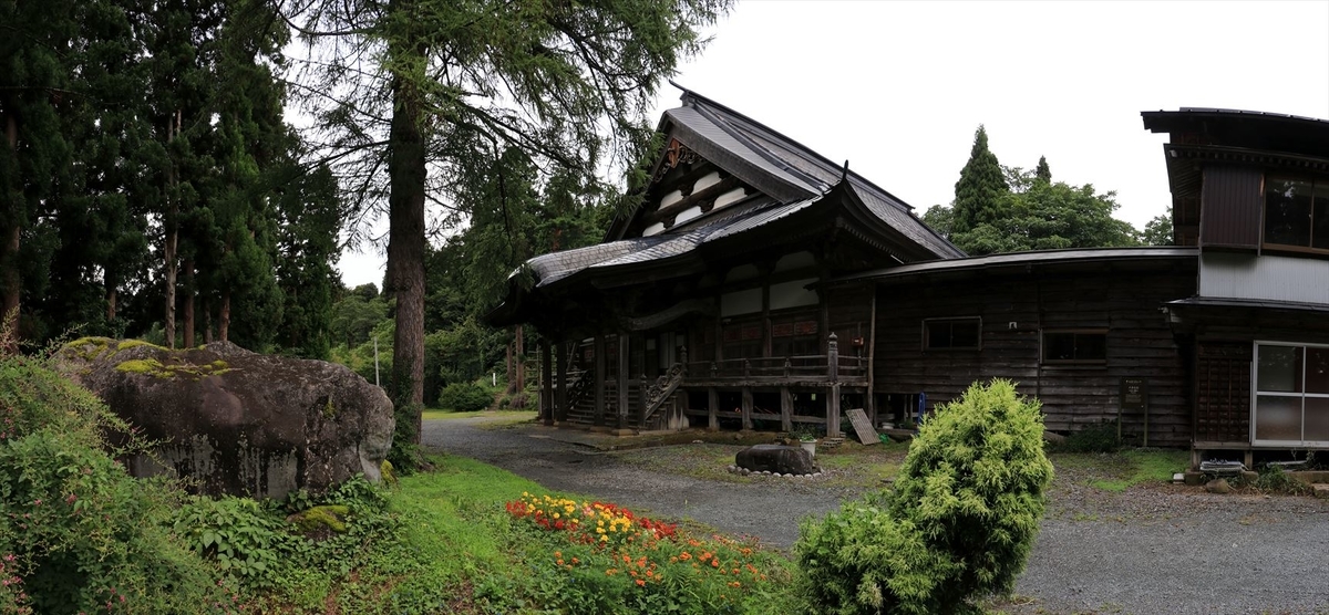 大日坊の本堂に到着。正式には大日坊瀧水寺という寺院です。出羽三山との関連が深い寺院で、明治の神仏分離以前はこの後に向かう注連寺と同様に湯殿山の別当寺である湯殿山派四ヶ寺に属していました。また江戸時代には徳川家の祈願所として庇護され、家光の乳母である春日局によって大日如来尊像が寄進されたと伝わっています。