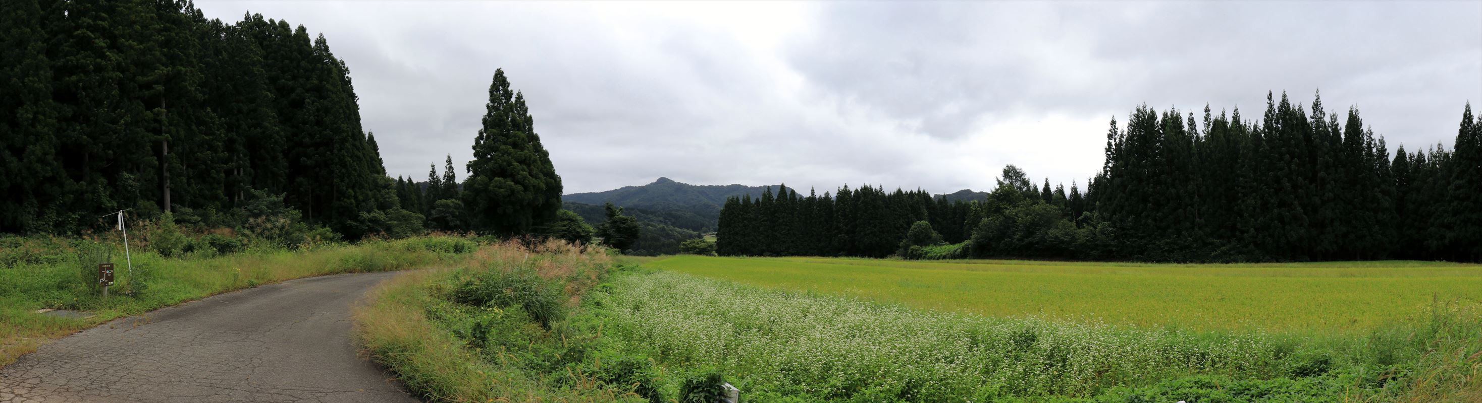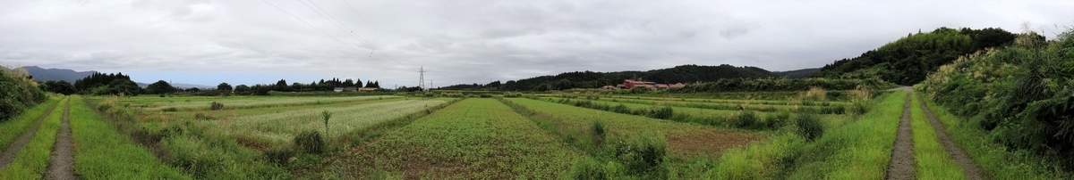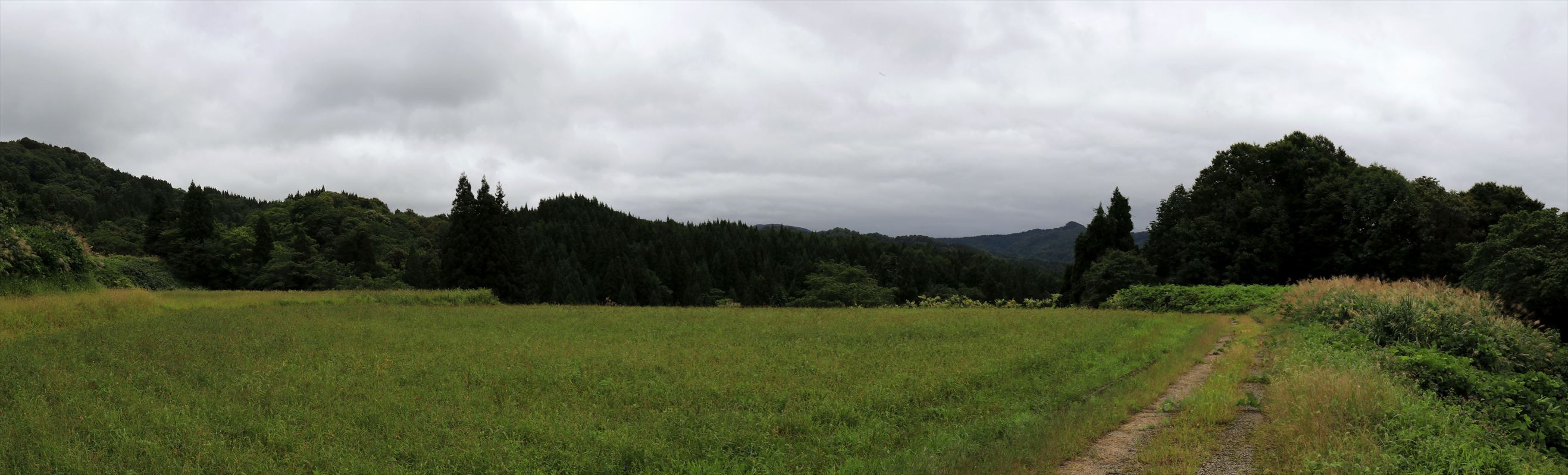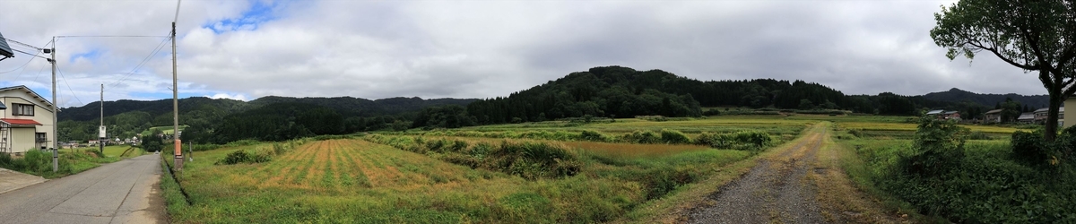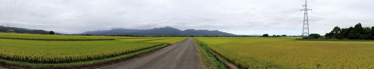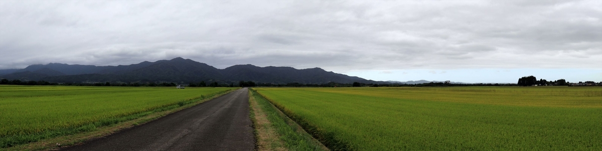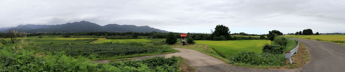 庚申塔から少し先に進むと、ようやく庄内平野の田園風景っぽいものが視界に広がりました。登山という観点においては一応は下山という事になるのでしょうか。
