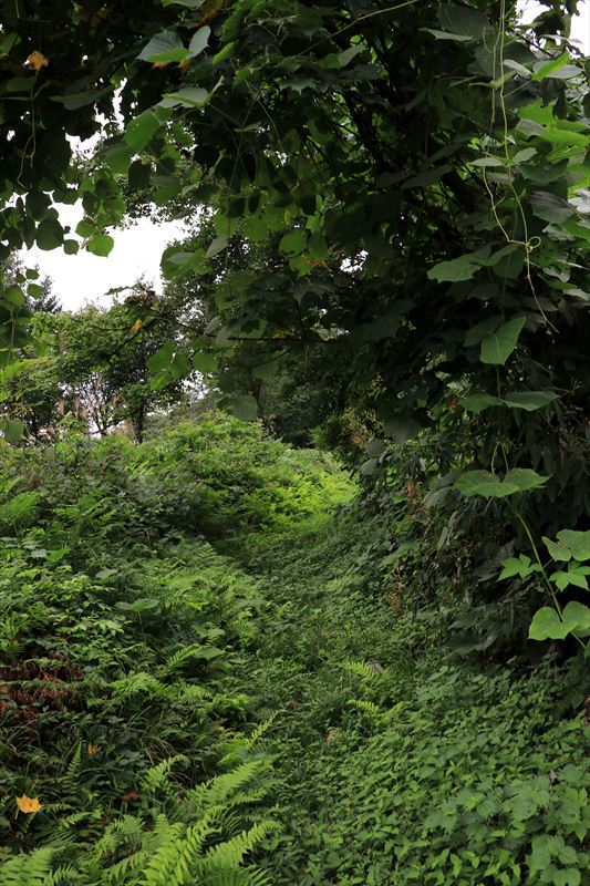トラバース路の方も雑草がもさもさに生い茂っていて自然に還りかけている……真新しい幟とのギャップが凄い。