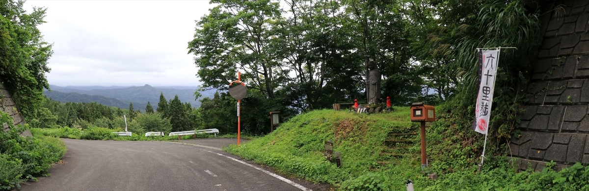 十王峠に到着。六十里越街道においての最後の峠になり、ここから先は庄内平野まで下り一辺倒の道程となります。