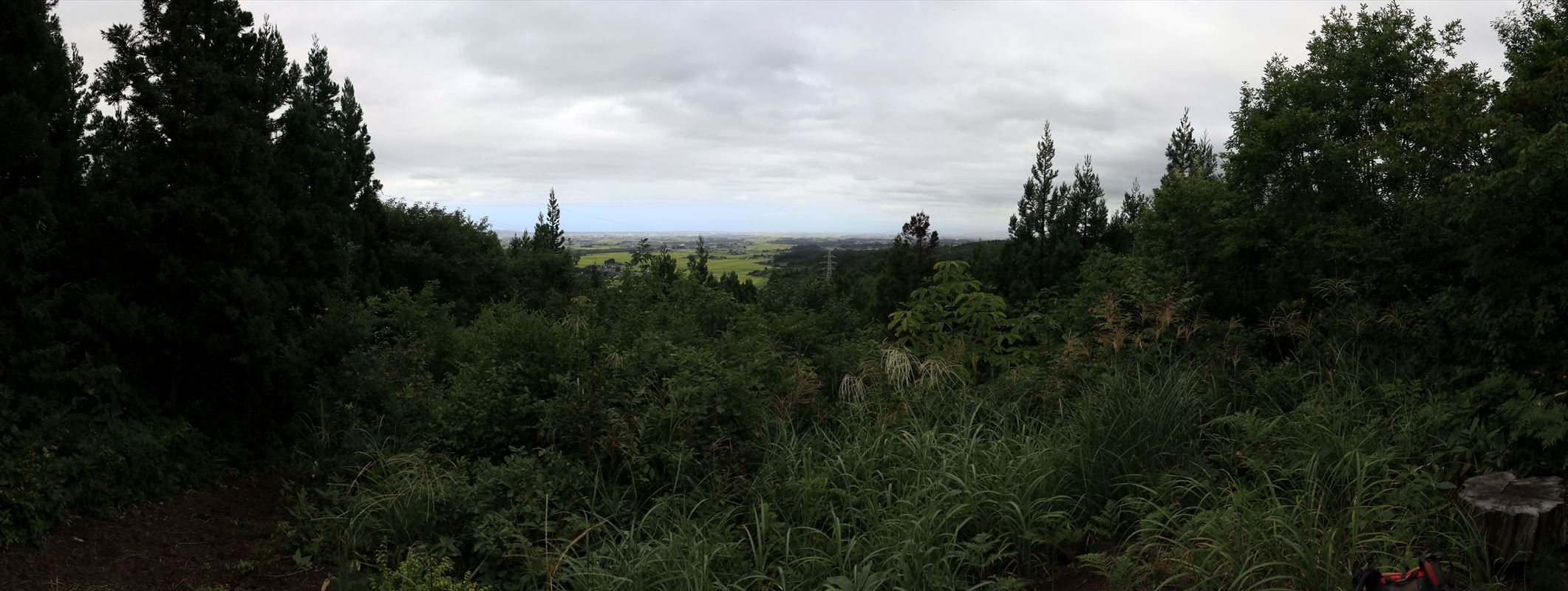展望台からの眺め。標高は既に200m、殆ど麓に近い所まで下ってしまったので眺めは大した事ないですが、月山の山頂から遥か遠くに見えていた庄内平野がここまで近付いてきた所を見ると感慨深かった。
