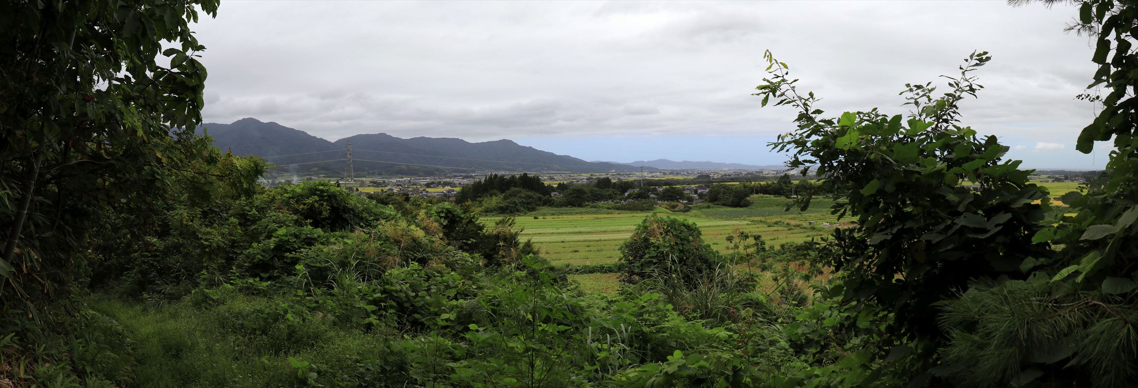 庄内平野の望遠。すぐ先には鶴岡の市街地が見えますが流石にそこまでは歩かず、途中からバスに乗る事になります。