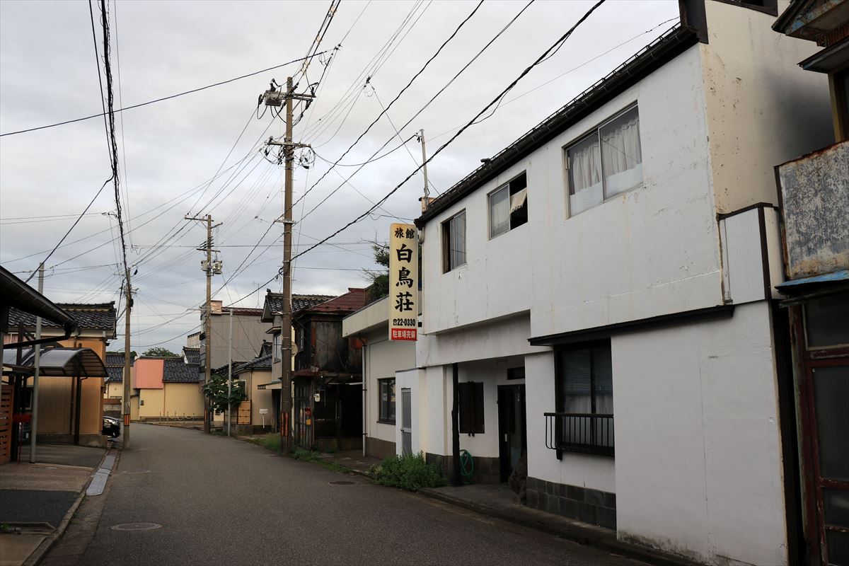 こちらが今回の宿である白鳥荘……酒田に来た時は専ら駅前のアルファーワンが定宿なんですが、最近は古びた旅館に泊まるのが個人的なブームなのと、洗濯機の利用が無料という点に惹かれて今回はこちらの宿へ。