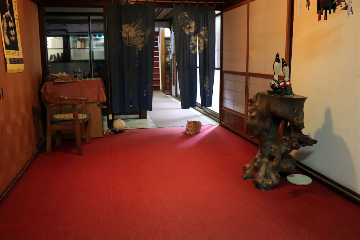 この旅館の名物である看板猫。かなりフリーダムに館内を闊歩していて、部屋の扉を開けっ放しにしていると入ってくる事もあるとか……カメラを構えると目線とポーズくれました。慣れっこのようです。