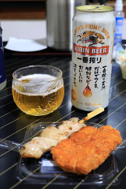 前菜をビールと共に。麓近くで気温も高く喉が渇く一日でしたので、ロング缶が凄まじい勢いで身体に染み込んでいく。